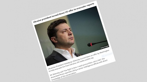এ ছাড়া সংবাদমাধ্যম ওয়াশিংটন পোস্ট যুক্তরাষ্ট্র ও ইউক্রেনের কর্মকর্তাদের উদ্বৃতি দিয়ে জানিয়েছে, কর্মকর্তারা বলেছেন—মার্কিন সরকার জেলেনস্কিকে সাহায্যের জন্য প্রস্তুত।