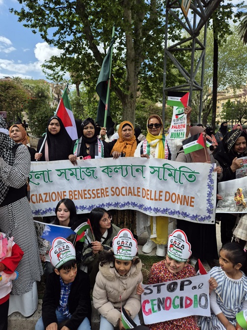 চোখে পড়ার মতো ছিল প্রবাসী বাংলাদেশি নারী-পুরুষ এবং শিশুদের উপস্থিতি। সবার মুখে ছিল একই দাবি— “গাজার উপর আগ্রাসন বন্ধ করো”। বক্তারা বলেন, যতদিন না যুদ্ধ বন্ধ হবে, ততদিন এই প্রতিবাদ চলবে। বাচ্চাদের মুখে ইতালির প্রধানমন্ত্রী জর্জা মেলোনিকে আহ্বান জানানো হয়, যেন এই যুদ্ধবন্দে তার ভূমিকা থাকে। তিনি যেন শীঘ্রই গাজার যুদ্ধবন্দের উদ্যোগে প্রভাবশালী দেশগুলোর সাথে আলোচনা করেন।