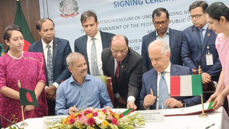 মঙ্গলবার (৬ মে) প্রবাসীকল্যাণ ও বৈদেশিক কর্মসংস্থান মন্ত্রণালয়ে ইতালির স্বরাষ্ট্রমন্ত্রী মাত্তেও পিয়ান্তেদোসি এবং প্রবাসীকল্যাণ ও বৈদেশিক কর্মসংস্থান উপদেষ্টা ড. আসিফ নজরুলের উপস্থিতিতে এটি সই হয়।