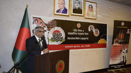 আখি সীমা কাওসার, রোম, ইতালি প্রতিনিধি: ইতালির রোমস্থ বাংলাদেশ দূতাবাস যথাযোগ্য মর্যাদায় ‘শহীদ দিবস ও আন্তর্জাতিক মাতৃভাষা দিবস-২০২৩’ পালন করেছে। কর্মসূচির অংশ হিসেবে ২১ ফেব্রুয়ারি ২০২৩ সকালে দূতাবাস প্রাঙ্গণে আনুষ্ঠানিকভাবে জাতীয় পতাকা অর্ধনমিত করা হয়।