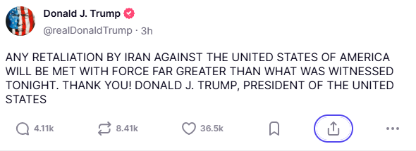 ইরানে হামলার পর নিজেই নিজেকে ধন্যবাদ দিলেন ট্রাম্প