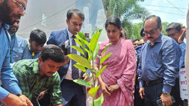 পরে সাভার উপজেলা পরিষদ চত্বরে একটি কাঠাল গাছের চারা রোপণের মাধ্যমে সাভার উপজেলায় এক দিনে এক লাখ চারাগাছ রোপণ কর্মসূচির উদ্বোধন করেন পরিবেশ উপদেষ্টা।