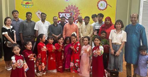 প্রবাস মেলা ডেস্ক: আজ এক আনন্দঘন উৎসবমুখর পরিবেশের মধ্য দিয়ে ভিয়েতনামে বাংলা নববর্ষ ১৪৩১ উদযাপন করা হয়। দিবসটি উপলক্ষ্যে ভিয়েতনামে বসবাসরত বিভিন্ন পেশা শ্রেণীর প্রবাসি বাংলাদেশি, স্থানীয় বিভিন্ন সাংস্কৃতিক সংগঠনের সদস্যদের উপস্থিতে মুখরিত হয়ে উঠে উৎসবের প্রাঙ্গন-ভিয়েতনামে নিযুক্ত বাংলাদেশের রাষ্ট্রদূতের বাসভবনটি।