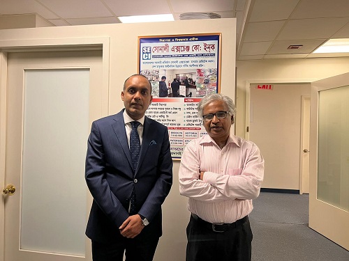 হাকিকুল ইসলাম খোকন, নিউইয়র্ক, যুক্তরাষ্ট্র প্রতিনিধি: নিউইয়র্কস্থ বাংলাদেশ কনস্যুলেট জেনারেল -এর কনসাল জেনারেল ড. মোহাম্মদ মনিরুল ইসলাম ৮ জুন ২০২২ তারিখে ম্যানহাটানস্থ ‘বাংলাদেশ সোনালী এক্সচেঞ্জ’ পরিদর্শন করেন। তিনি সোনালী এক্সচেঞ্জের প্রেসিডেন্ট ও সিইও জনাব দেবশ্রী মিত্র এর সাথে এক বৈঠকে মিলিত হন। উক্ত বৈঠকে কনস্যুলেটের প্রথম সচিব ও দূতালয় প্রধান মিজ ইসরাত জাহান উপস্থিত ছিলেন। সভার শুরুতেই জনাব দেবশ্রী মিত্র বাংলাদেশ সোনালী এক্সচেঞ্জ এর কার্যপরিধি ও পদ্ধতি কনসাল জেনারেল কে অবহিত করেন এবং বাংলাদেশের বৈদেশিক মুদ্রার রিজার্ভ বাড়াতে তাদের অব্যাহত প্রচেষ্টার কথা তুলে ধরেন।