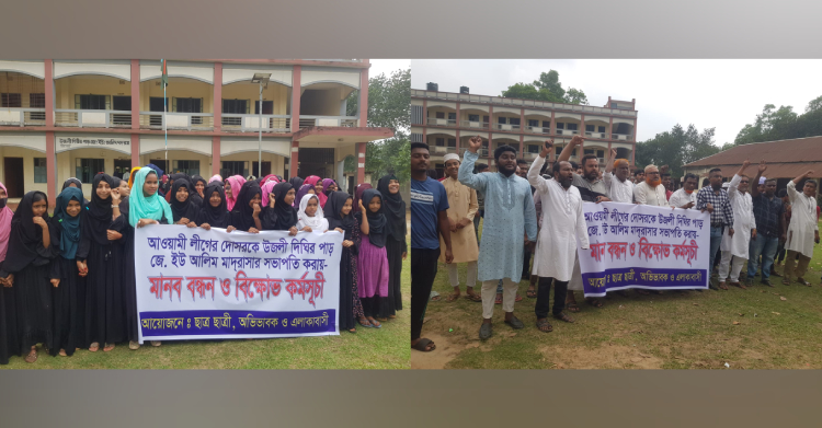 কাপাসিয়ায় মাদরাসার এডহক কমিটির সভাপতির বিরুদ্ধে স্থানীয়দের মানববন্ধন ও বিক্ষোভ