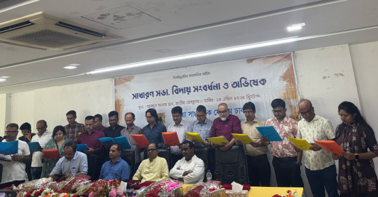 ডেস্ক রিপোর্ট: প্রতিশ্রুতিশীল সংগঠন কুষ্টিয়া সাংবাদিক ফোরাম ঢাকার বার্ষিক সাধারণ সভা, বিদায় সংবর্ধনা ও নবনির্বাচিত কমিটির অভিষেক অনুষ্ঠান জাতীয় প্রেসক্লাবে অনুষ্ঠিত হয়েছে। বৃহস্পতিবার দুপুরে সদ্যবিদায়ী সভাপতি রেজোয়ানুল হক রাজার সভাপতিত্বে প্রথম সাধারণ সভা অনুষ্ঠিত হয়। সভা শেষে বিদায়ী কমিটির সদস্যদের সংবর্ধনা প্রদান করা হয় এবং নবনির্বাচিত সভাপতি আবু বকর সিদ্দীক ও সাধারণ সম্পাদক রনজক রিজভীসহ নতুন কমিটির সদস্যদের বরণ করে নেওয়া হয়। নবনির্বাচিতদের শপথ পাঠ করান প্রধান নির্বাচন কমিশনার কাজল রশীদ শাহীন।