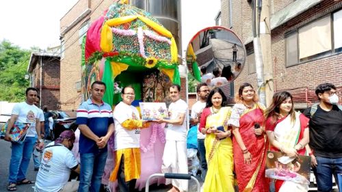 বিপুল উৎসাহ এবং উদ্দীপনায় সকাল দশটায় নিজস্ব মন্দিরে শ্রী শ্রী জগন্নাথ দেবের পূজা ও ছাপান্ন ভোগ নিবেদন এবং কীর্তন করা হয়। পূজার পৌরহিত্য করেন শ্রী সঞ্জীব গোস্বামী।