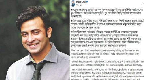 ক্যারিয়ারের ২৩ বছর, সবাইকে ধন্যবাদ জানালেন শাকিব
