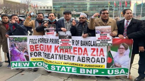 সম্প্রতি নিউইয়র্কে অনুষ্ঠিত এ বিক্ষোভ-সমাবেশ থেকে বেগম খালেদা জিয়ার ‘চিকিৎসার্থে বিদেশ যাবার’ অনুমতির দাবিতে জাতিসংঘের মহাসচিব বরাবর স্মারকলিপি দেন তারা।