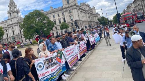 শামসুল আলম লিটন, লন্ডন, যুক্তরাজ্য থেকে: জাতিসংঘ ঘোষিত ইন্টারন্যাশনাল ডে অফ দ্য ভিকটিমস অফ এনফোর্সড ডিজএপিয়ারেন্স বা গুমের শিকার ব্যক্তিদের স্মরণে আন্তর্জাতিক দিবস উপলক্ষ্যে সাউথ এশিয়ান পলিসি ইনিশিয়েটিভের আহ্বানে যুক্তরাজ্যের ১৭টি মানবাধিকার সংগঠনের উদ্যোগে বৃটিশ পার্লামেন্টের সামনে সমাবেশ অনুষ্ঠিত হয়। সমাবেশে বক্তারা বলেছেন, গুম একটি মানবতাবিরোধী অপরাধ। ‘ছেলেহারা মায়ের ডাক-ফ্যাসিবাদ নিপাত যাক’ শ্লোগানে শ্লোগানে মুখরিত বিক্ষোভ সমাবেশে বক্তারা বলেন, এই মানবতা বিরোধী অপরাধের সাথে জড়িতদের বিচারের আওতায় আনতে হবে।