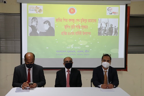 গ্রীসে নিযুক্ত বাংলাদেশের রাষ্ট্রদূত আসুদ আহ্মেদ -এর সভাপতিত্বে দূতাবাসে আয়োজিত আলোচনা সভায় দূতাবাসের কর্মকর্তাবৃন্দ বক্তব্য রাখেন। আলোচনা অনুষ্ঠানে রাষ্ট্রদূত শান্তিপূর্ণ বিশ্ব বিনির্মাণে বঙ্গবন্ধুর অসামান্য অবদানের কথা স্মরণ করেন। ‘জুলিও কুরি’ পদক প্রাপ্তির মাধ্যমেই সর্বপ্রথম বাংলাদেশ একটি শান্তিকামী রাষ্ট্র হিসেবে বিশ্বের বুকে পরিচিতি লাভ করে বলে রাষ্ট্রদূত তার বক্তব্যে উল্লেখ করেন। তিনি নতুন প্রজন্মের মাঝে বঙ্গবন্ধুর অসাম্প্রদায়িক ও অহিংসার আদর্শ ছড়িয়ে দেয়ার উপর গুরুত্বারোপ করেন। এ সময় দূতাবাসের সকল কর্মকর্তা-কর্মচারিগণ উপস্থিত ছিলেন।