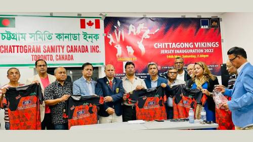 প্রবাস মেলা ডেস্ক: ১৪ মে ২০২২, শনিবার চট্টগ্রাম সমিতি কানাডার উদ্যোগে ক্রিকেট টিমের জার্সি উদ্বোধন অনুষ্ঠানের মধ্য দিয়ে আনুষ্ঠানিকভাবে যাত্রা শুরু করল চিটাগাং ভাইকিংস ক্রিকেট টিম। সেই সাথে চট্টগ্রাম সমিতি কানাডার সফলতার ঝুড়িতে যুক্ত হলো আরেক সাফল্যের স্বর্ণ পালক।