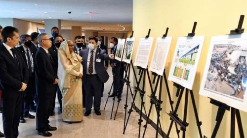 প্রধানমন্ত্রীর ডেপুটি প্রেস সেক্রেটারি কেএম সাখাওয়াত মুন জানান, বৃহস্পতিবার (২২ সেপ্টেম্বর ২০২২) জাতিসংঘ সদর দপ্তরের লেভেল-১ এর আঁকাবাঁকা দেয়ালে আয়োজিত প্রদর্শনী পরিদর্শন করেন প্রধানমন্ত্রী।