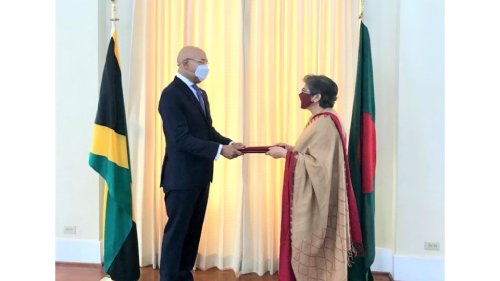 হাকিকুল ইসলাম খোকন, নিউইয়র্ক, যুক্তরাষ্ট্র প্রতিনিধি: ক্যারিবিয়ান অঞ্চলের দেশ জ্যামাইকাতে সমর্বতী রাষ্ট্রদূত (হাই কমিশনার) হিসেবে পরিচয়পত্র পেশ করলেন জাতিসংঘে নিযুক্ত বাংলাদেশের স্থায়ী প্রতিনিধি রাষ্ট্রদূত রাবাব ফাতিমা। দ্বীপরাষ্ট্র জ্যামাইকার রাজধানী কিংস্টনে অবস্থিত কিংস্ হাউজে জ্যামাইকার গভর্ণর জেনারেল স্যার প্যাট্রিক লিন্টন অ্যালেন এর কাছে এ পরিচয়পত্র পেশ করেন তিনি।