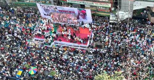 এদিকে, গণসমাবেশ ঘিরে দুপুরের আগে থেকেই নয়াপল্টন ও এর আশপাশের এলাকা লোকে লোকারণ্য হয়ে যায়। দুপুর আড়াইটায় আনুষ্ঠানিকভাবে গণসমাবেশ শুরুর কথা থাকলেও দুপুর ১২টার পর থেকে ঢাকা মহানগরের বিভিন্ন থানা ও ওয়ার্ড থেকে নেতাকর্মীরা খণ্ড খণ্ড মিছিল নিয়ে নয়াপল্টনে আসতে থাকেন।