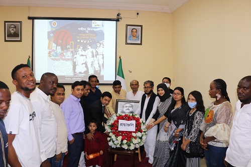 ভাষা আন্দোলন ও মুক্তিযুদ্ধে শহীদদের রুহের মাগফেরাত ও দেশের অব্যাহত শান্তি ও সমৃদ্ধি কামনা করে বিশেষ মোনাজাত করা হয়। নাইজেরিয়ায় বসবাসরত প্রবাসী বাংলাদেশিবৃন্দ, মিশনের কর্মকর্তা ও কর্মচারী এবং তাদের পরিবারবর্গ অনুষ্ঠানে উপস্থিত ছিলেন। সবশেষে, বাংলাদেশি ঐতিহ্যবাহী খাবারযোগে অতিথিদের আপ্যায়ন করা হয়।
