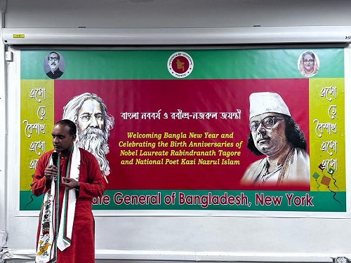 হাকিকুল ইসলাম খোকন, নিউইয়র্ক, যুক্তরাষ্ট্র প্রতিনিধি: বাংলাদেশ কনস্যুলেট জেনারেল, নিউইয়র্ক-এ ২৩ জুন ২০২৩ ব্যাপক উৎসাহ-উদ্দীপনার সাথে বাংলা নববর্ষ ১৪৩০ এবং বিশ্বকবি রবীন্দ্রনাথ ঠাকুর ও জাতীয় কবি কাজী নজরুল ইসলামের জন্ম বার্ষিকী উদযাপন করে। অনুষ্ঠানে নিউইয়র্কে নিযুক্ত বিভিন্ন দেশের কনসাল জেনারেল ও কূটনীতিকবৃন্দ, বীর মুক্তিযোদ্ধাগণ, নিউইয়র্কস্থ বাংলাদেশ কমিউনিটির রাজনৈতিক, সামাজিক, ব্যবসায়িক, সাংস্কৃতিক ও মিডিয়া ব্যক্তিবর্গসহ বাংলাদেশ কমিউনিটির সদস্যবৃন্দ উপস্থিত ছিলেন। দিবসটি উপলক্ষ্যে কনস্যুলেট জেনারেলকে দেশীয় ঐতিহ্য ও সংস্কৃতির আলোকে সজ্জিত করা হয়।