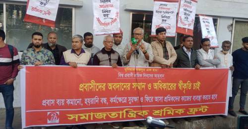 প্রবাস মেলা ডেস্ক: প্রবাসে ব্যয় কমানো, হয়রানি বন্ধ, নিরাপদ অভিবাসন ও প্রবাস ফেরতদের পুনর্বাসন ব্যবস্থার দাবি জানিয়েছে সমাজতান্ত্রিক শ্রমিক ফ্রন্ট। বুধবার (১৮ ডিসেম্বর) জাতীয় প্রেস ক্লাবের সামনে আয়োজিত এক সমাবেশে এ দাবি জানানো হয়।