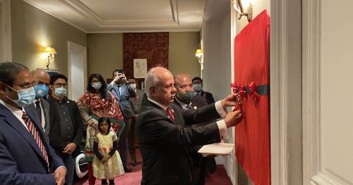 অনুষ্ঠানে জাতির পিতা বঙ্গবন্ধু শেখ মুজিবুর রহমান-এর জন্মশতবার্ষিকী উদযাপনের অংশ হিসেবে দূতাবাসের লাইব্রেরি তথা সভাকক্ষকে রূপান্তর করে নবনির্মিত ‘বঙ্গবন্ধু লাউঞ্জ’ এর উদ্বোধন করা হয়। হয়। ‘বঙ্গবন্ধু লাউঞ্জ’-এ বঙ্গবন্ধুর সুবিশাল প্রতিকৃতি, ঐতিহাসিক আলোকচিত্র, বঙ্গবন্ধু ও বাংলাদেশ নিয়ে গ্রন্থসমূহ, দূতাবাসের প্রকাশনাসমূহ প্রদর্শিত রয়েছে। এছাড়া বঙ্গবন্ধুর উপর নির্মিত বিভিন্ন প্রামাণ্য চিত্র প্রদর্শনের ব্যবস্থা করা হয়েছে।