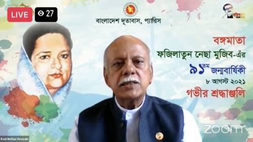 প্যারিসস্থ বাংলাদেশ দূতাবাসে বঙ্গমাতা ফজিলাতুন নেছা মুজিব-এর ৯১তম জন্মবার্ষিকী উদযাপন