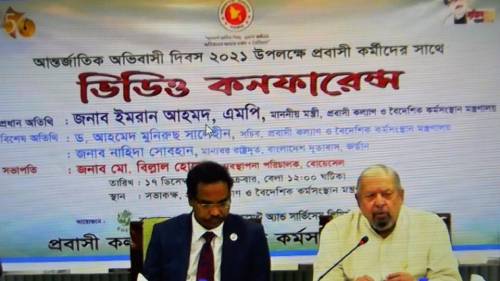রাশেদ কাদের, আম্মান, জর্ডান প্রতিনিধি: জর্ডানস্থ বাংলাদেশ দূতাবাসের উদ্যোগে যথাযোগ্য মর্যাদায় আন্তর্জাতিক অভিবাসী দিবস ২০২১ পালিত হয়েছে। এ উপলক্ষ্যে ১৭ ডিসেম্বর, ২০২১ প্রবাসী কল্যাণ ও বৈদেশিক কর্মসংস্থান মন্ত্রণালয়ের মাননীয় মন্ত্রী জনাব ইমরান আহমেদ, এমপি জর্ডান প্রবাসী কর্মীদের সাথে ভিডিও কনফারেন্সে মিলিত হন। বাংলাদেশ প্রান্তে মাননীয় মন্ত্রীর সাথে এ সময় আরও উপস্থিত ছিলেন প্রবাসী কল্যাণ ও বৈদেশিক কর্মসংস্থান মন্ত্রণালয়ের সচিব ড. আহমেদ মুনিরুছ সালেহীন, বোয়েসেলের ব্যবস্থাপনা পরিচালক জনাব মো: বিল্লাল হোসেন, মন্ত্রণালয় ও অধীনস্ত বিভিন্ন সংস্থার উর্ধবতন কর্মকর্তাবৃন্দ। জর্ডান প্রান্তে মান্যবর রাষ্ট্রদূত নাহিদা সোবহান, দুতাবাসের অন্যান্য কর্মকর্তাবৃন্দ ও জর্ডান প্রবাসী কর্মীরা মাননীয় মন্ত্রীর সাথে মতবিনিময় করেন। মান্যবর রাষ্ট্রদূত প্রবাসীদের কল্যাণে বিভিন্ন পদক্ষেপ গ্রহণের ক্ষেত্রে মাননীয় মন্ত্রী, সচিব ও মন্ত্রণালয়ের সহযোগিতার জন্য ধন্যবাদ জানান এবং প্রবাসী বাংলাদেশীদের স্বার্থ সুরক্ষায় কাজ করে যাওয়ার প্রত্যয় ব্যক্ত করেন। মাননীয় মন্ত্রী প্রবাসী কর্মীদের বক্তব্য শুনেন এবং তাদের উত্থাপিত বিভিন্ন বিষয়ে প্রয়োজনীয় ব্যবস্থা গ্রহণের আশ্বাস প্রদান করেন।
