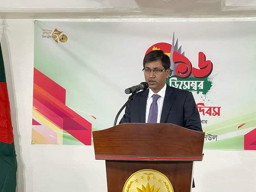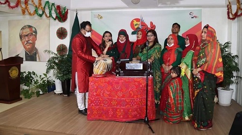 মহান বিজয় দিবস উপলক্ষে আয়োজিত অনুষ্ঠানে মুক্তিযুদ্ধে শহীদদের বিদেহী আত্মার শান্তি এবং দেশ-জাতির সমৃদ্ধি কামনা করে বিশেষ মোনাজাত করা হয় এরপর দূতাবাসের কর্মকর্তাবৃন্দ মহান বিজয় দিবস উপলক্ষে রাষ্ট্রপতি, প্রধানমন্ত্রী, পররাষ্ট্রমন্ত্রী ও স্বরাষ্ট্রপ্রতিমন্ত্রীর বাণী পাঠ করেন।