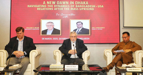 দ্বিপাক্ষিক সম্পর্কের ক্ষেত্রে যুক্তরাষ্ট্র সবসময় তার নিজের স্বার্থকে প্রাধান্য দেয়, এমন প্রশ্নের জবাবে বাংলাদেশ ফাস্ট নীতি গ্রহণের পরামর্শ দেন এই মার্কিন কূটনীতিক। এসময় তরুণদের উদ্যোগ ও আগামীর সম্ভাবনার প্রশ্নে জেন-জি’দের সুযোগ দেয়ার প্রতি গুরুত্বারোপ করেন তিনি।