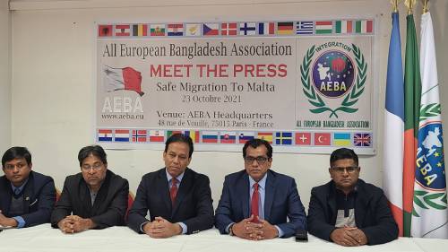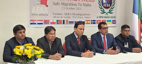 রাসেল আহমেদ, প্যারিস, ফ্রান্স থেকে: ইউরোপের দেশ মাল্টায় বৈধ শ্রমবাজার এবং নিরাপদ আবাসন প্রসঙ্গে আয়েবার সংবাদ সম্মেলন। ইউরোপ সহ মাল্টায় নিরাপদ অভিবাসনের লক্ষ্যে ‘মিট দ্য প্রেস’ করেছে অল ইউরোপিয়ান বাংলাদেশ এসোসিয়েশন আয়েবা। সংগঠনের সহ-সভাপতি ফখরুল আকম সেলিম এর সঞ্চালনায় উক্ত অনুষ্ঠানে মূল বক্তব্য রাখেন সংগঠনের মহাসচিব কাজী এনায়েত উল্লাহ।