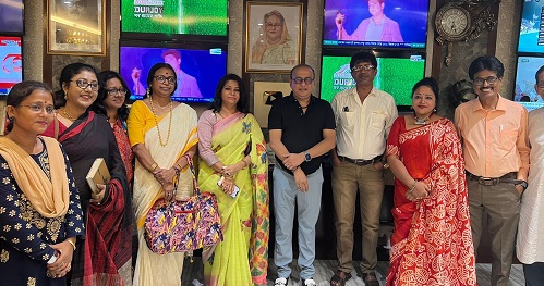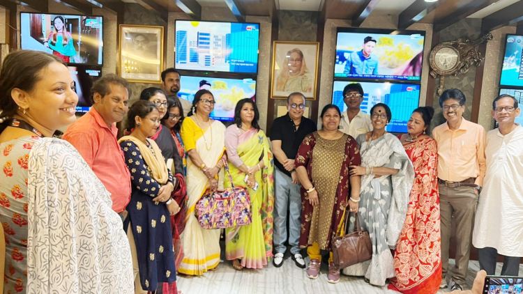 প্রবাস মেলা ডেস্ক: ২৪ অক্টোবর ২০২২, সোমবার কোলকাতার বেশ কয়েকজন সঙ্গীতশিল্পী ও সংস্কৃতি-কর্মীদের একটি দল মাইটিভি অফিস পরিদর্শন করেন। তাদেরকে স্বাগত জানান মাইটিভি’র চেয়ারম্যান নাসির উদ্দীন সাথী। শিল্পীদের আগমনে মাইটিভি অফিসে আনন্দঘন পরিবেশের সৃষ্টি হয়। তারা সবাই কোলকাতার সঙ্গীত সংগঠন রবির-বীণা’র সদস্য। তারা মূলত বাংলাদেশে এসেছিলেন উদীচী’র (গোপালগঞ্জ জেলা) আমন্ত্রনে। তাদের সম্মানে মাইটিভির চেয়ারম্যান নাসির উদ্দীন সাথী’র উদ্যোগে আড্ডা এবং আপ্যায়নের আয়োজন করা হয়। এসময় উপস্থিত ছিলেন বিশিষ্ট ব্যবসায়ী ও সমাজসেবী জুবাইদা নাজনীন চৌধুরী, মাইটিভি’র প্রডিউসার হারুন মেহেদী, মাইটিভি’র কর্মকর্তা মুনমুন লুসি, উদীচী’র সংগঠক বিমল মজুমদার ও প্রবাস মেলা’র উপদেষ্টা, টিভি উপস্থাপক ও আবৃত্তিকার মামুন ইমতিয়াজ।
