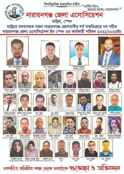 কবির আল মাহমুদ, মাদ্রিদ, স্পেন থেকে: স্পেনের মাদ্রিদে ব্যাপক উৎসাহ উদ্দীপনার মধ্য দিয়ে নারায়নগঞ্জ জেলা অ্যাসোসিয়েশন মাদ্রিদ স্পেনের নব গঠিত কমিটির অভিষেক অনুষ্ঠিত হয়েছে। ৮ সেপ্টেম্বর ২০২১, বুধবার স্পেনের রাজধানী মাদ্রিদের বাঙালি অধ্যুষিত লাভাপিয়েসের রাজপুত রেস্টুরেন্টে নবগঠিত এই কমিটির অভিষেক অনুষ্ঠিত হয়। এই অভিষেককে ঘিরে অনুষ্ঠানস্থল বিপুলসংখ্যক নারায়নগঞ্জ জেলাবাসীসহ প্রবাসীদের মিলনমেলায় পরিণত হয়। তাদের উপস্থিতিতে ৩৫ সদস্য বিশিষ্ট কমিটির নাম ঘোষণা হয়।