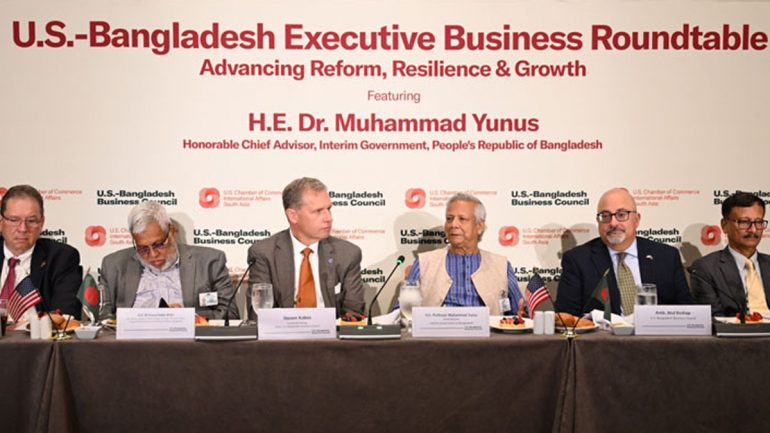 বুধবার (২৪ সেপ্টেম্বর) নিউইয়র্কে অনুষ্ঠিত যুক্তরাষ্ট্রুবাংলাদেশ এক্সিকিউটিভ বিজনেস গোলটেবিল আলোচনায় বক্তব্য রাখতে গিয়ে তিনি এ আহ্বান জানান। ‘অ্যাডভান্সিং রিফর্ম, রেজিলিয়েন্স অ্যান্ড গ্রোথ’ শীর্ষক এ আলোচনার আয়োজন করে ইউএস-বাংলাদেশ বিজনেস কাউন্সিল (ইউএসবিবিসি)।