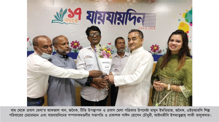 আশরাফুল আলম মাসুদ, রিপোর্টার, প্রবাস মেলা: দেশের ঐতিহ্যবাহী সংবাদমাধ্যম দৈনিক যায়যায়দিন হাঁটি হাঁটি পা পা করে আজ ১৭তম বর্ষে পদার্পণ করেছে। নানা চড়াই-উতরাই ও কণ্টকাকীর্ণ পথ অতিক্রম করে পত্রিকাটি গণমানুষের মুখপত্রে পরিণত হয়েছে। জন্মলগ্ন থেকেই যায়যায়দিন দেশের অর্থনৈতিক উন্নয়ন, সাংস্কৃতিক বিকাশ, কৃষি, খাদ্য নিরাপত্তায় শতভাগ স্বনির্ভরতা অর্জন তথা বাংলাদেশের গঠনমূলক পরিবর্তনের সরব সঙ্গী হয়ে রয়েছে। তাই এ প্রতিষ্ঠানটির প্রতিষ্ঠা বার্ষিকীতে শনিবার সকাল থেকে যায়যায়দিন কার্যালয়ে দেশবরেণ্য ব্যক্তিদের ঢল নামে। তাদের প্রাণঢালা শুভেচ্ছা ও ভালোবাসায় সিক্ত হয় যায়যায়দিন পরিবার। ১৭ বছরে পর্দাপণ উপলক্ষে যায়যায়দিনের সম্পাদকমণ্ডলীর সভাপতি ও প্রকাশক, এইচআরসি গ্রুপের কর্ণধার সাঈদ হোসেন চৌধুরী সাংবাদিক ও কর্মীদের শুভেচ্ছা জানিয়ে বলেন, কারো কাছে নতি স্বীকার নয়, দেশের স্বাধীনতা ও সার্বভৌমত্বের প্রতি বিশ্বাস রেখে নিজস্ব ধারা অনুযায়ী বাংলাদেশের ইতিহাস, ঐতিহ্যকে ধারণ করে যায়যায়দিন এগিয়ে যাবে সামনের পথে।
