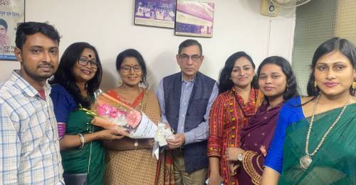 প্রবাস মেলা ডেস্ক: ১৭ ফেব্রুয়ারি ২০২৪, শনিবার সন্ধ্যায় প্রবাস মেলা অফিসে বেড়াতে আসেন যুক্তরাষ্ট্র প্রবাসী বিজ্ঞানী, লেখক, ছড়াকার, গল্পকার ও অধ্যাপক ড. ধনঞ্জয় সাহা। এতদোপলক্ষ্যে, প্রবাস মেলা কার্যালয়ে এক ঘরোয়া আড্ডার আয়োজন করা হয়। আড্ডায় তার সাথে প্রবাস মেলা’র মিডিয়াকর্মীরা চা-চক্রে অংশ নিয়ে তার প্রবাস জীবনের নানান গল্প শোনেন। এক ফাঁকে তার হাতে প্রবাস মেলা’র পক্ষ থেকে ফুলেল শুভেচ্ছা জানান পত্রিকাটির অনলাইন রিপোর্টার আশরাফুল আলম মাসুদ ও কবি-অভিনেত্রী শিখা কর্মকার। আড্ডায় আরও উপস্থিত ছিলেন- সমাজসেবক ও সঙ্গীতশিল্পী ইঞ্জিনিয়ার মো: ফখরুজ্জামান, তানিয়া করিম ডায়না, অভিনয়শিল্পী ইসরাত জাহান পুতুল, মডেল ও অভিনেত্রী লাকী শারমীন, অভিনেত্রী লিজা খানম, কবি ও অভিনেত্রী শিখা কর্মকার। ধনঞ্জয় সাহা এবং শিখা কর্মকার ২/৩টা কবিতা-ছড়া পড়ে শোনান। কণ্ঠশিল্পী ইঞ্জি: মো: ফখরুজ্জামান ২/৩টা গানও পরিবেশন করেন আড্ডায়।