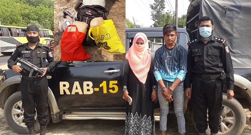 সোয়েব সাঈদ, রামু, কক্সবাজার থেকে: কক্সবাজারের রামুতে ১২ কেজি গাজা সহ ২ জনকে আটক করেছে র্যাব। ১১ মার্চ ২০২১, বৃহস্পতিবার বিকালে চট্টগ্রাম-কক্সবাজার মহাসড়কের জোয়ারিয়ানালা ইউনিয়নের রাবার বাগান এলাকায় যাত্রীবাহি সৌদিয়া চেয়ারকোচ থেকে তাদের আটক করা হয়। আটককৃত ২ জনই আপন ভাই-বোন। এরা হলেন-কক্সবাজার পৌরসভার কলাতলী ঝিরিঝিরি পাড়া এলাকার নুর মোহাম্মদের স্ত্রী আজিজা বেগম (২৪) ও মো: ছালামের ছেলে মো: শরীফ (১৯)।