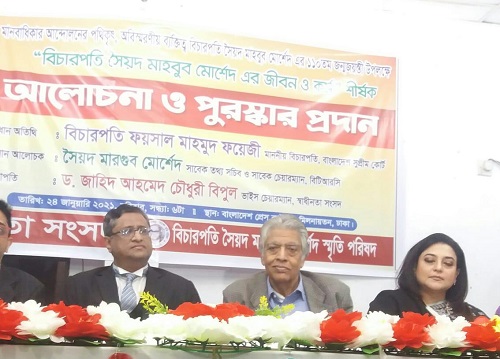 প্রবাস মেলা ডেস্ক: ই-কমার্স এন্টারপ্লেনার্স অব বাংলাদেশ (ইসিইবি) প্রেসিডেন্ট রায়হানা খান বিচারপতি সৈয়দ মাহবুব মোর্শেদ স্মৃতি সম্মাননা পুরস্কার ২০২১ লাভ করেছেন। বাংলাদেশ প্রেস কাউন্সিল মিলনায়তনে মানবাধিকার আন্দোলনের পথিকৃৎ অবিস্মরণীয় ব্যক্তিত্ব বিচারপতি সৈয়দ মাহবুব মোর্শেদ এর ১১০তম জন্মজয়ন্তী উপলক্ষ্যে আয়োজিত এক অনুষ্ঠানে তাকে এই পুরস্কারে ভূষিত করা হয়। স্বাধীনতা সংসদ ও বিচারপতি সৈয়দ মাহবুব মোর্শেদ স্মৃতি পরিষদ কর্তৃক আয়োজিত উক্ত অনুষ্ঠানে প্রধান অতিথি ছিলেন বিচারপতি সৈয়দ ফয়সাল মাহমুদ ফয়েজী। প্রধান আলোচক ছিলেন সাবেক তথ্যসচিব ও বিটিআরসি’র চেয়ারম্যান সৈয়দ মার্গুব মোর্শেদ। অনুষ্ঠানে সভাপতিত্ব করেন স্বাধীনতা সংসদের ভাইস চেয়ারম্যান ড. জাহিদ আহাম্মেদ চৌধুরী বিপুল।