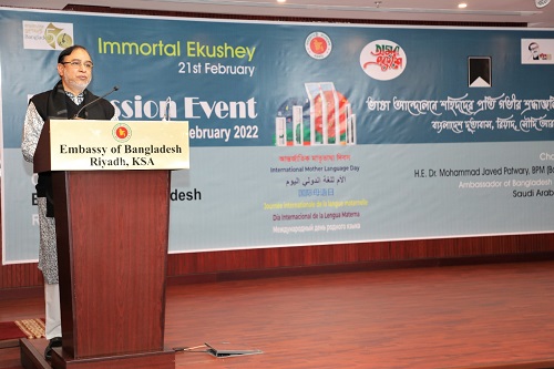 এ উপলক্ষে দূতাবাস সৌদি আরবে বসবাসরত বাংলাদেশি কমিউনিটিকে নিয়ে এক আলোচনা সভার আয়োজন করেন। এ সময় রাষ্ট্রদূত ৫২এর ভাষা আন্দোলন ও ৭১ এর মহান মুক্তিযুদ্ধের চেতনায় প্রবাসীদের নিজ নিজ অবস্থান থেকে কাজ করে বিদেশে বাংলাদেশের ভাবমূর্তি উজ্জ্বল করা এবং বঙ্গবন্ধুর স্বপ্নের সোনার বাংলা গড়ার জন্য এগিয়ে আসার আহবান জানান। তিনি বলেন, সর্বকালের সর্বশ্রেষ্ঠ বাঙ্গালি জাতির পিতা বঙ্গবন্ধু শেখ মুজিবুর রহমান ১৯৫২ সালের ভাষা আন্দোলন থেকে শুরু করে ১৯৭১ সালের মহান মুক্তিযুদ্ধ পর্যন্ত দেশের প্রতিটি স্বাধিকার আন্দোলনে নেতৃত্ব দিয়েছেন। আজ বঙ্গবন্ধুর সুযোগ্য কন্যা প্রধানমন্ত্রী শেখ হাসিনার গতিশীল নেতৃত্বে বাংলাদেশ বিশ্বের কাছে উন্নয়নের রোল মডেল। প্রধানমন্ত্রী প্রণীত রূপকল্প ২০৪১ অনুযায়ী বাংলাদেশকে একটি উচ্চ আয়ের দেশে উন্নীত করার লক্ষ্যে তিনি প্রবাসীদের প্রতি আহবান জানান।