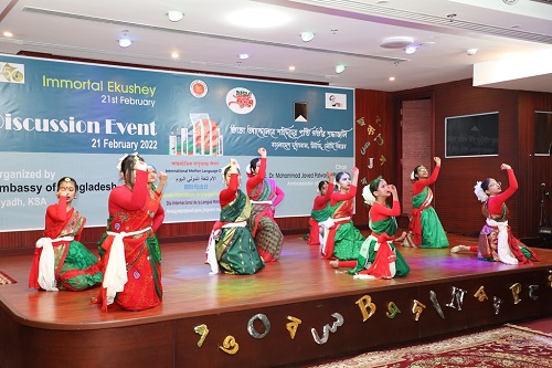 অনুষ্ঠানে রিয়াদস্থ বাংলাদেশ আন্তর্জাতিক বিদ্যালয় (ইংরেজি শাখা) ও ভারতীয় আন্তর্জাতিক বিদ্যালয় এর শিক্ষার্থীরা নাচ ও গান পরিবেশন করে। অনুষ্ঠানে ৯ জন রাষ্ট্রদূতসহ ৪৫ জন কূটনীতিক যোগদান করেন। এসময় আন্তর্জাতিক মাতৃভাষা দিবস উপলক্ষে একটি তথ্যচিত্র ও ১২টি ভাষায় একুশে ফেব্রুয়ারির গান পরিবেশন করা হয়।