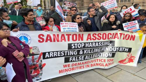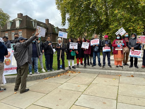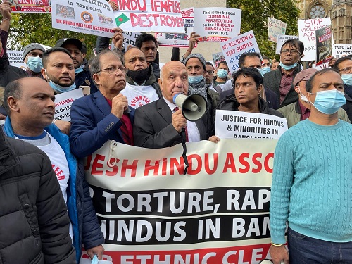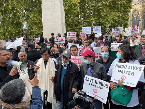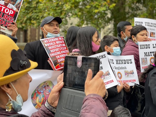 তাই বাংলাদেশ হিন্দু এসোসিয়েশন ইউকের উদ্যোগে ২৭ অক্টোবর ২০২১, বুধবার সকাল ১১টা থেকে বিকেল ৪টা অবদি বৃটিশ পার্লামেন্ট ও বিবিসি হেড কোয়ার্টারের সম্মুখে প্রায় সহস্রলোকের সমাগমে প্রতিবাদ ও বিক্ষোভের আয়োজন করা হয়। যুক্তরাজ্যের ইতিহাসে প্রথমবারের মতো বাঙালী হিন্দু সম্প্রদায়ের এই বিশাল সমাবেশে বিভিন্ন শহর থেকে হিন্দু সংগঠনের সদস্যবৃন্দ সপরিবারে সবান্ধব অংশগ্রহণ করেন। বিশেষভাবে উল্লেখ্য যে, বৃটেনে বেড়ে ওঠা নতুন প্রজন্মের শিশু কিশোর, যুবক যুবতীদের স্বতস্ফুর্তভাবে অংশগ্রহণ ছিল চোখে পড়ার মত।