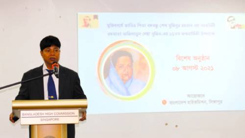 রাশিদুল ইসলাম জুয়েল, সিঙ্গাপুর থেকে: সিঙ্গাপুরে বাংলাদেশ দূতাবাসে বঙ্গমাতা ফজিলাতুন্নেছা মুজিবের ৯১তম জন্মবার্ষিকী উদযাপন করা হয়েছে। ৮ আগস্ট ২০২১, রবিবার অনুষ্ঠানিকভাবে জন্মবার্ষিকী উদযাপন করা হয়।