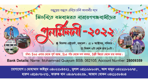 প্রবাস মেলা ডেস্ক: অস্ট্রেলিয়া সিডনিতে বসবাসরত নারায়ণগঞ্জবাসীদের জানানো যাচ্ছে যে, আগামী ৮ অক্টোবর ২০২২ সিডনির রকডেল হিমালয় রেষ্টুরেন্টে এক পুর্নমিলনীর আয়োজন করা হয়েছে।