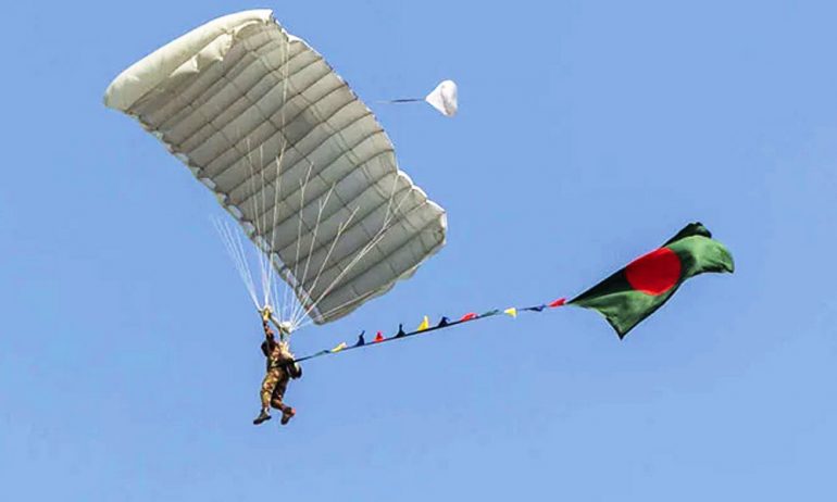 বিজয় দিবস উপলক্ষ্যে গত ১৬ ডিসেম্বর রাজধানীর তেজগাঁও পুরোনো বিমানবন্দর সংলগ্ন প্যারেড গ্রাউন্ডে সশস্ত্র বাহিনীর উদ্যোগে এই প্যারাস্যুটিং প্রদর্শনী অনুষ্ঠিত হয়।
