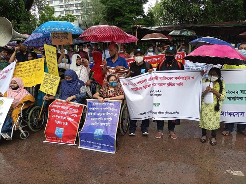 ২০২১-২২ বাজেটে প্রতিবন্ধী ব্যক্তিদের কর্মসংস্থান ও সুরক্ষা খাতের বরাদ্ধ বৃদ্ধির দাবিতে মানববন্ধন