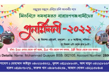 প্রবাস মেলা ডেস্ক: অস্ট্রেলিয়া সিডনিতে বসবাসরত নারায়ণগঞ্জবাসীদের জানানো যাচ্ছে যে, আগামী ৮ অক্টোবর ২০২২ সিডনির রকডেল হিমালয় রেষ্টুরেন্টে এক পুর্নমিলনীর আয়োজন করা হয়েছে। ‘বন্ধুত্বের বন্ধনে এগিয়ে …