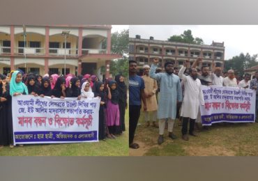 কাপাসিয়ায় মাদরাসার এডহক কমিটির সভাপতির বিরুদ্ধে স্থানীয়দের মানববন্ধন ও বিক্ষোভ